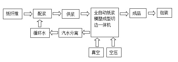 制漿工序完成后,適合紙漿模塑制品生產(chǎn)的漿液被送入EAMC型一體機。接下來的吸濾成型、熱壓定型、自動切邊等全部工藝過程都在EAMC型一體機上自動完成。其生產(chǎn)工藝過程簡述如下: